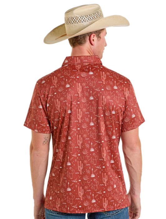 Rock & Roll Denim Men's Cactus Printed Polo in Rust