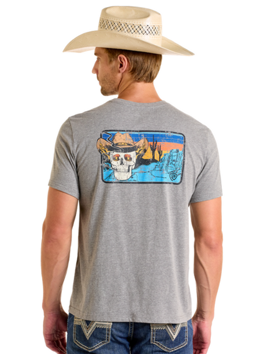 Rock & Roll Denim Men's Grey Cowboy Skull Graphic T-Shirt