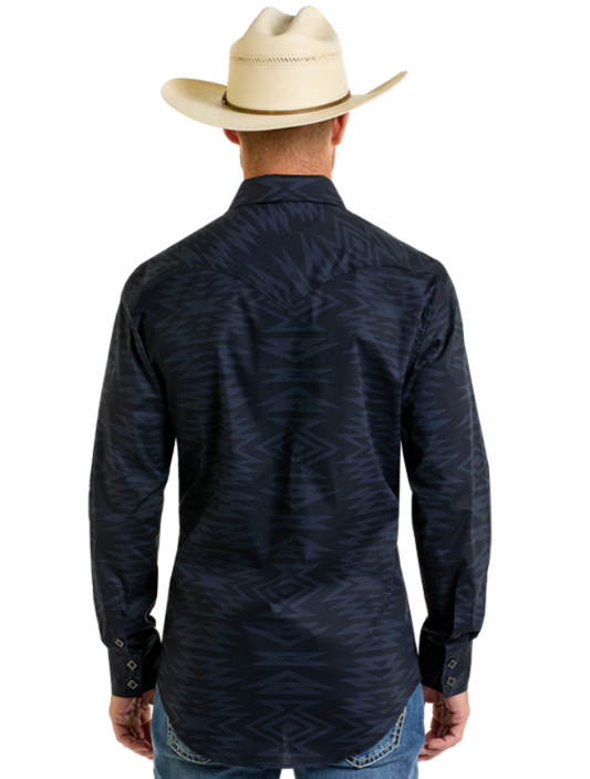 Rock & Roll Denim Men's Aztec Print Long Sleeve Snap Shirt