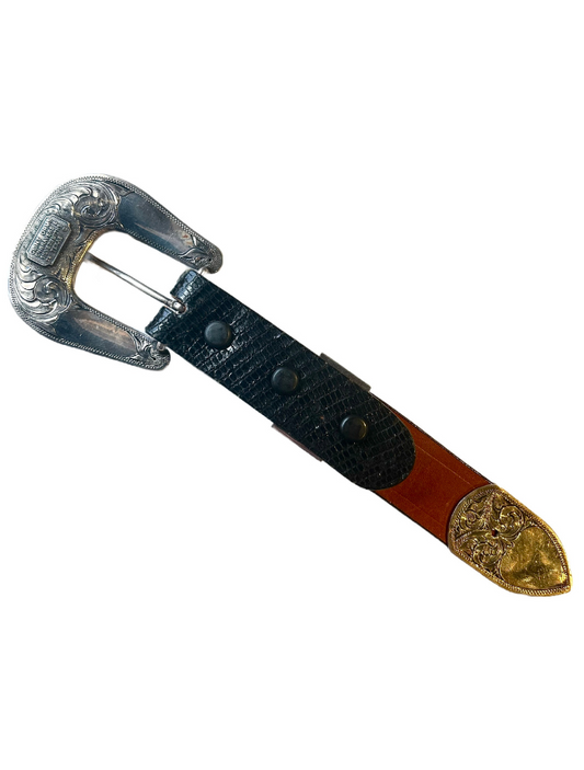 Clint Orms Sterling Silver, 14K Gold, & Sapphire Belt Buckle Set