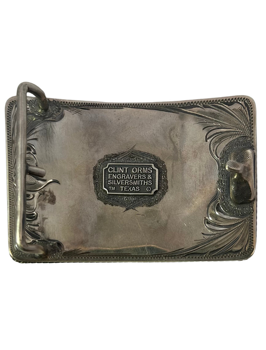Clint Orms Sterling Silver Carved Belt Buckle Set