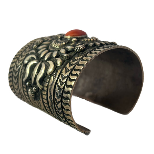 Darryl Becenti Red Spiny Oyster Shell Cabochon Silver Cuff BraceletRegular price $1,950.00 USDRegular priceUnit price per-