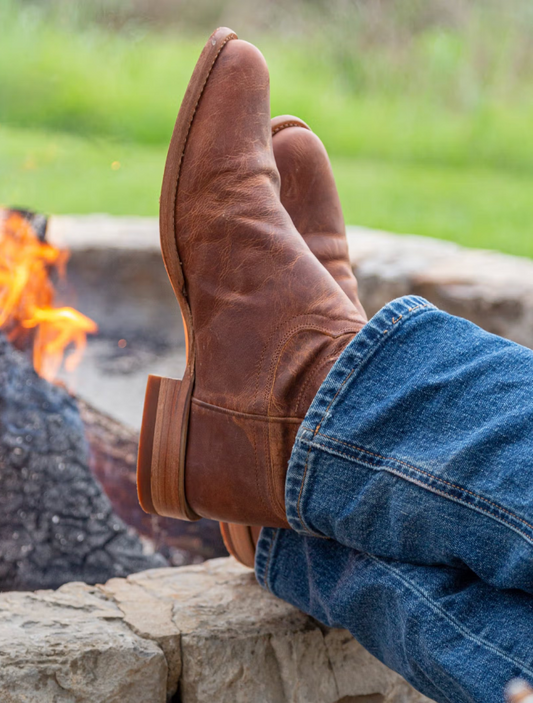 Men's Honey & Tan Embroidery Distressed Leather Cowboy Boot