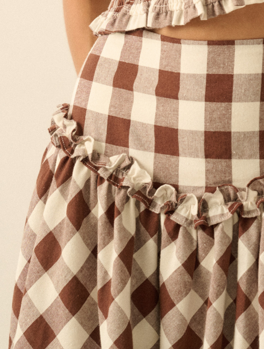 Promesa Gingham Drop Waist Ruffle Trim Midi Skirt