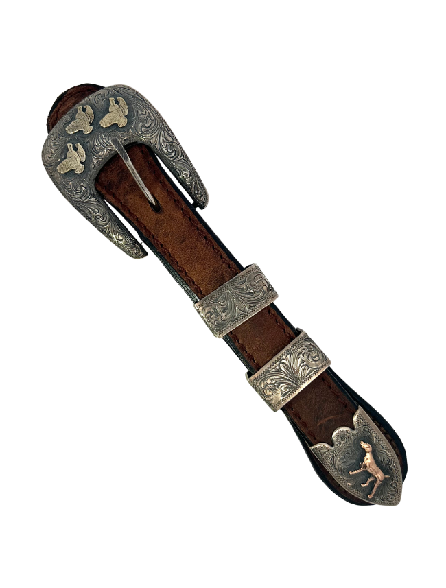 Clint Orms Sterling Silver & 10K Gold Quail & Pointer Belt Buckle Set