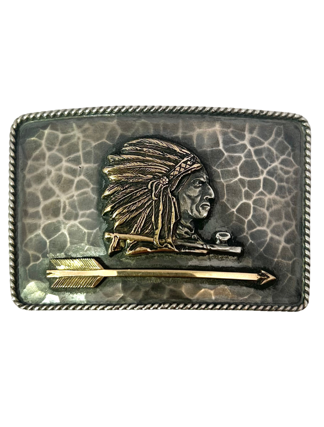 Clint Orms Zapata 1410 Sterling Silver / 14K Gold Hammered Chief Belt Buckle