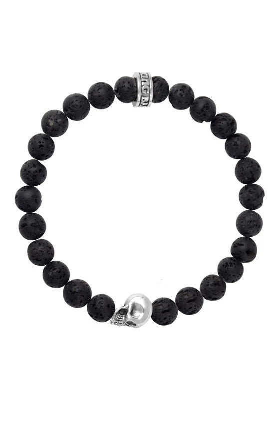 King Baby Black Lava Rock Bracelet with Skull Bead