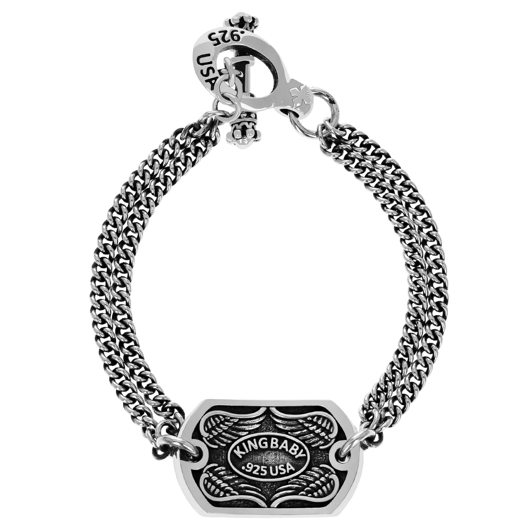 King Baby Saint Michael Double Curb link Chain Bracelet with T-Bar and Toggle