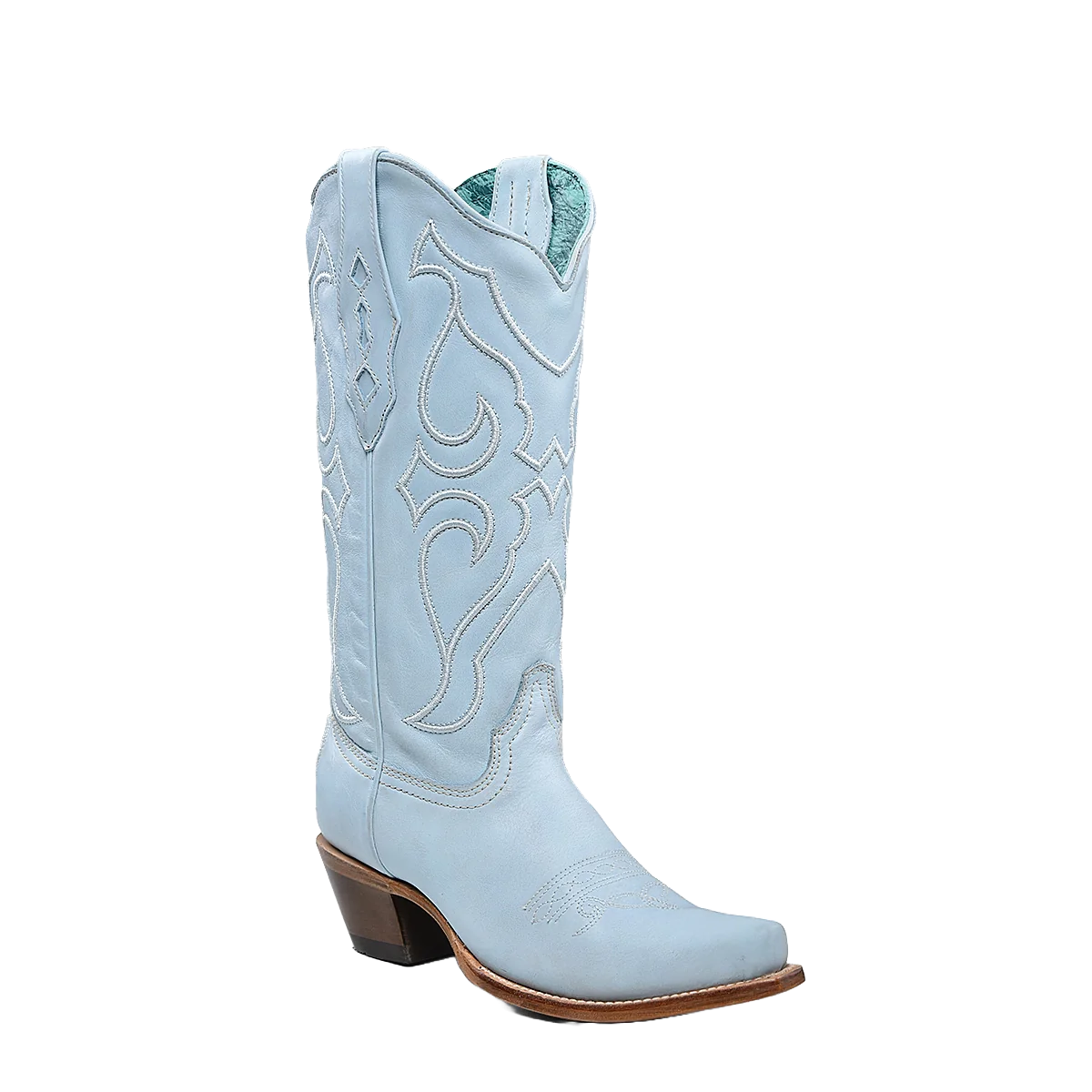 Elegant, sleek, and beautiful. This is the ideal blue hue boot with its simple embroidery patterned design that highlights its tall silhouette.