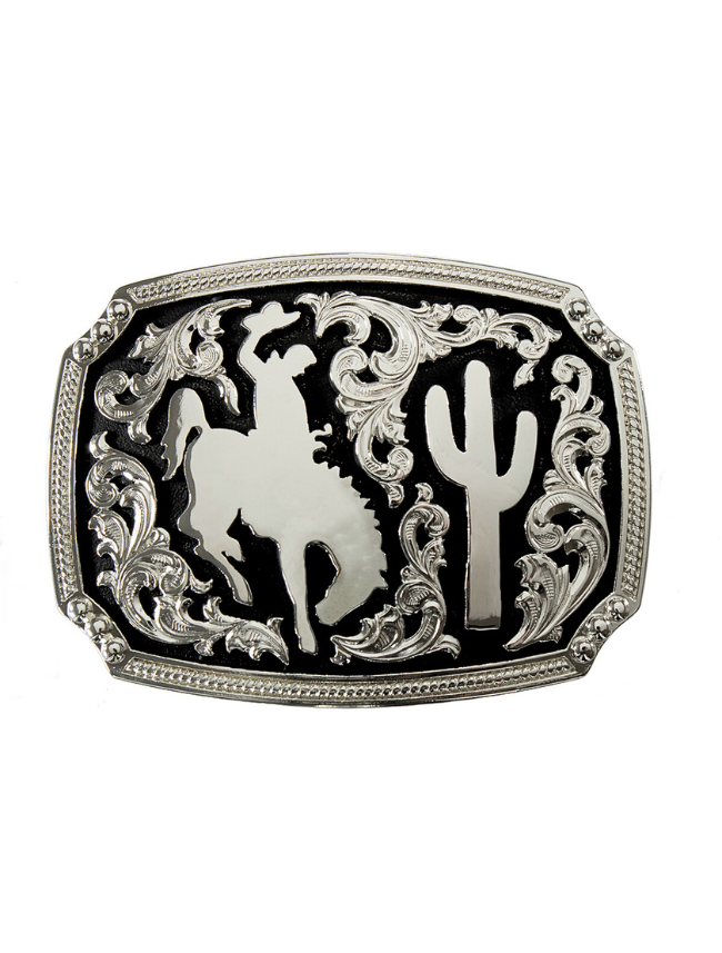Silver Bronco Rider Scrolling Belt Buckle