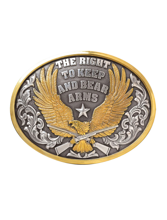 Silver & Gold "The Right To Keep and Bear Arms" Belt Buckle