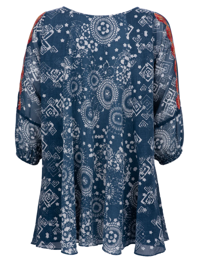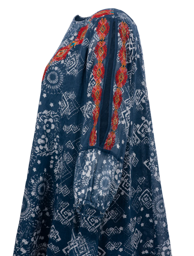 - Cotton tunic in a mix of denim blues